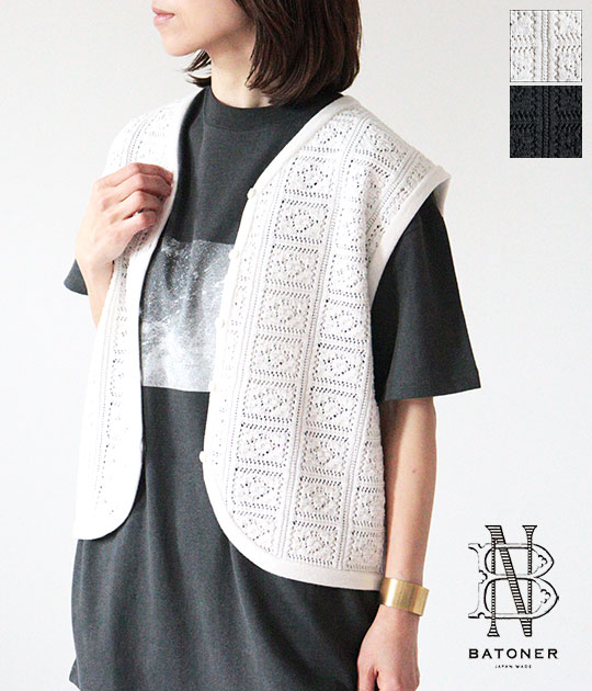 【送料無料】【2026SS】BATONER[バトナー] GRASSY LACE OPEN VEST BN-26SL-030