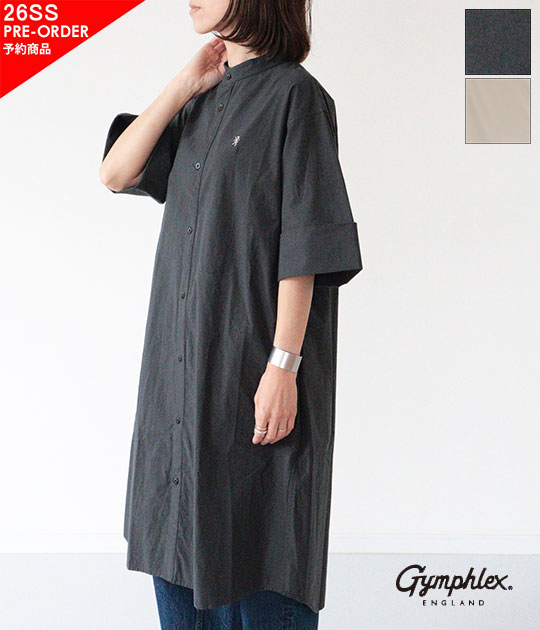 【ご予約商品】【3月上旬-下旬入荷予定】【送料無料】【ネコポス発送】【2026SS】Gymphlex[ジムフレックス] TYPEWRITER WASHER スタンドカラーS/Sドレス GY-G0119 TYO 【代引き不可・ペイ決済不可】