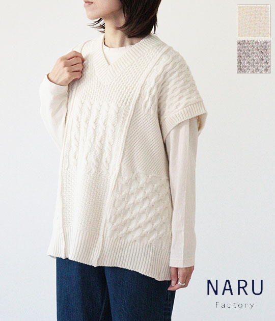 【送料無料】【2025AW】NARU[ナル] NATURAL COLORED WOOL 柄編みニットベスト 665405