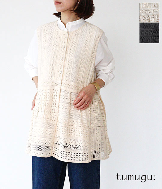 【送料無料【2025AW】】tumugu [ツムグ] クロシェレース2WAYベスト TB25307