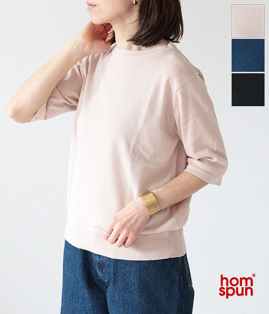 【送料無料】【ネコポス発送】【2026SS】homspun[ホームスパン] ソフトコンパクトヤーン半袖プルオーバー 7840
