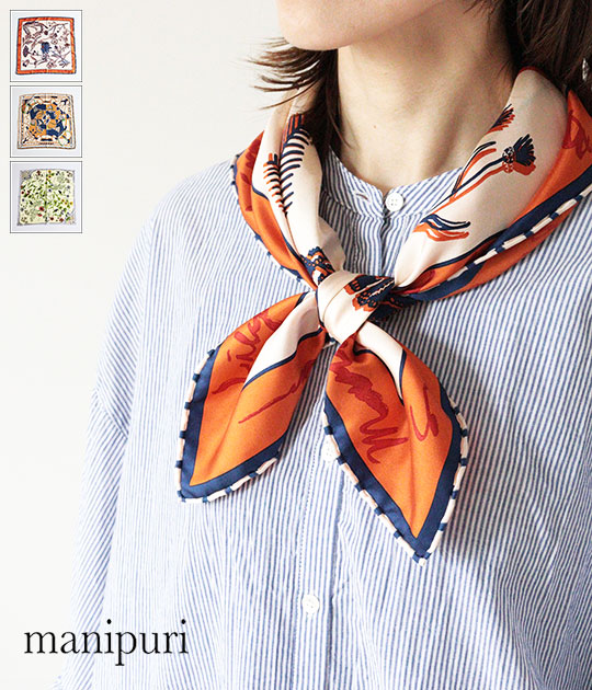 【送料無料】【ネコポス発送】【2026SS】manipuri[マニプリ] シルクスカーフ 65×65