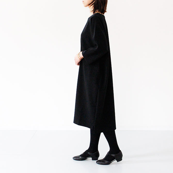 コクーンシルエットのミニマルなワンピース。
